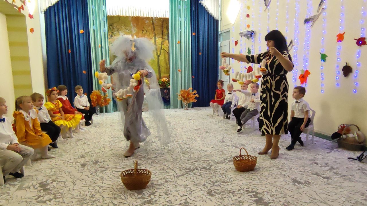 24 октября 2025 года воспитанники разновозрастной группы «Капельки» помогали красавице Осени вернуть волшебный сундучок, который украла тётушка Непогодушка.