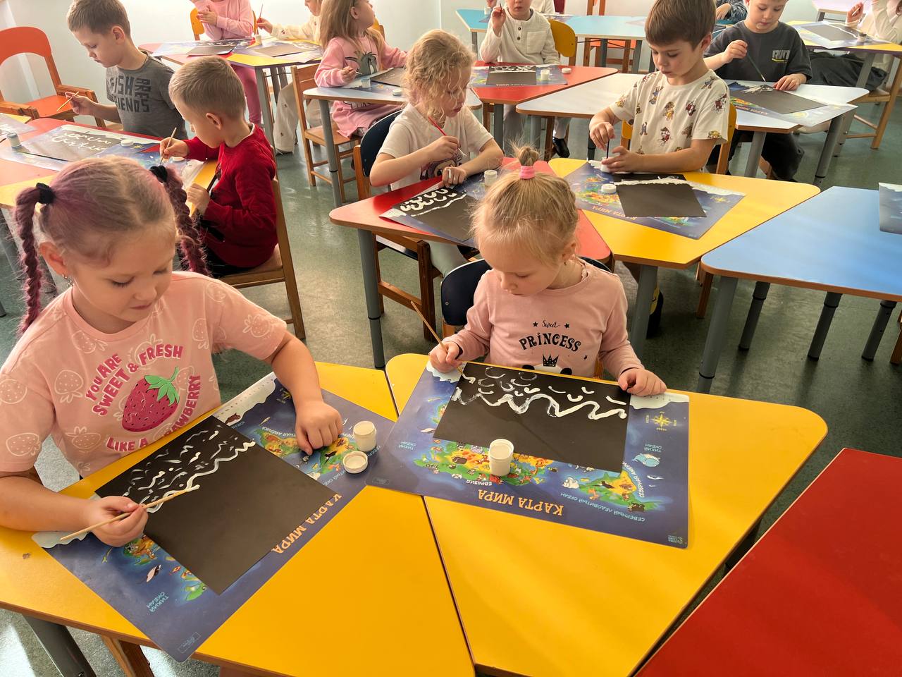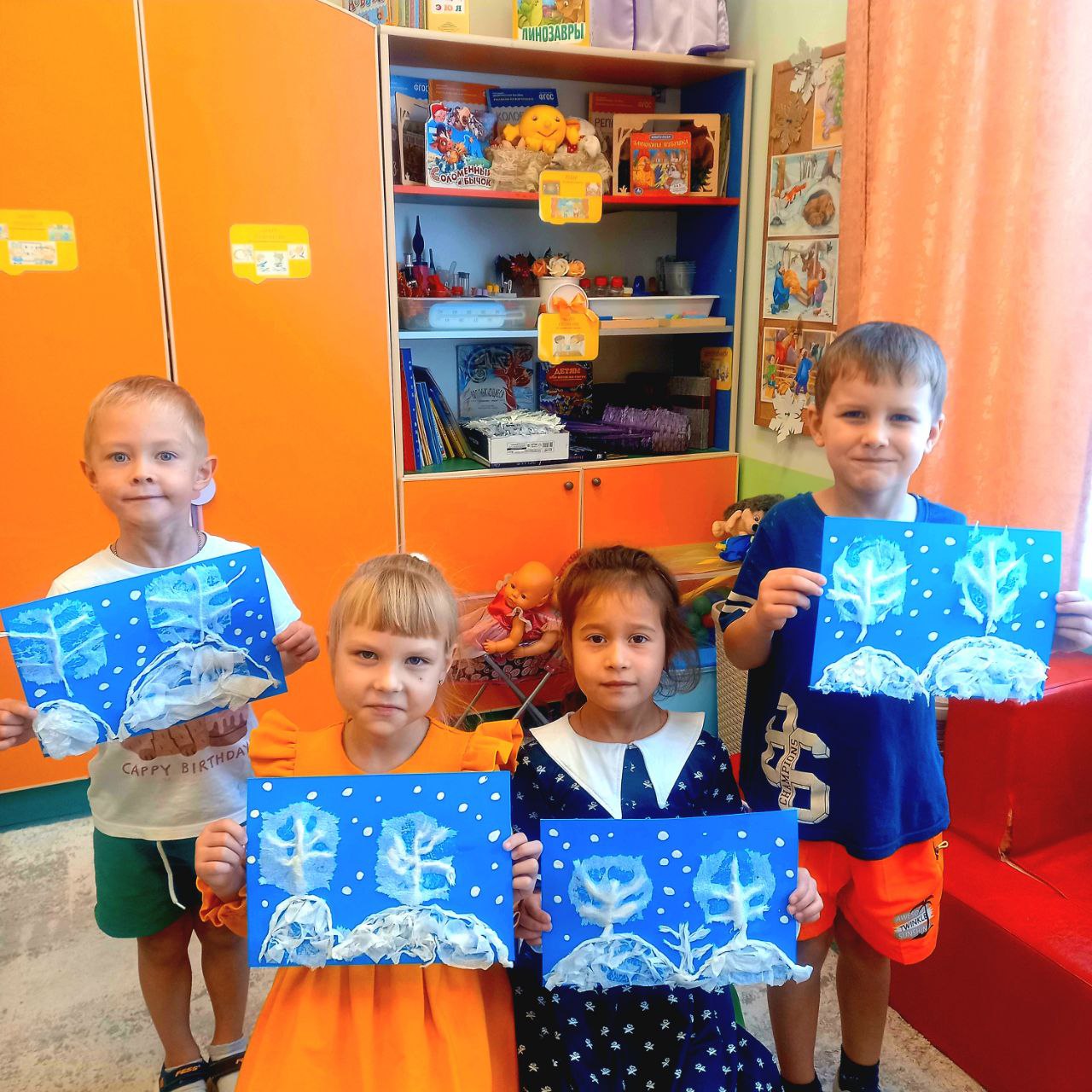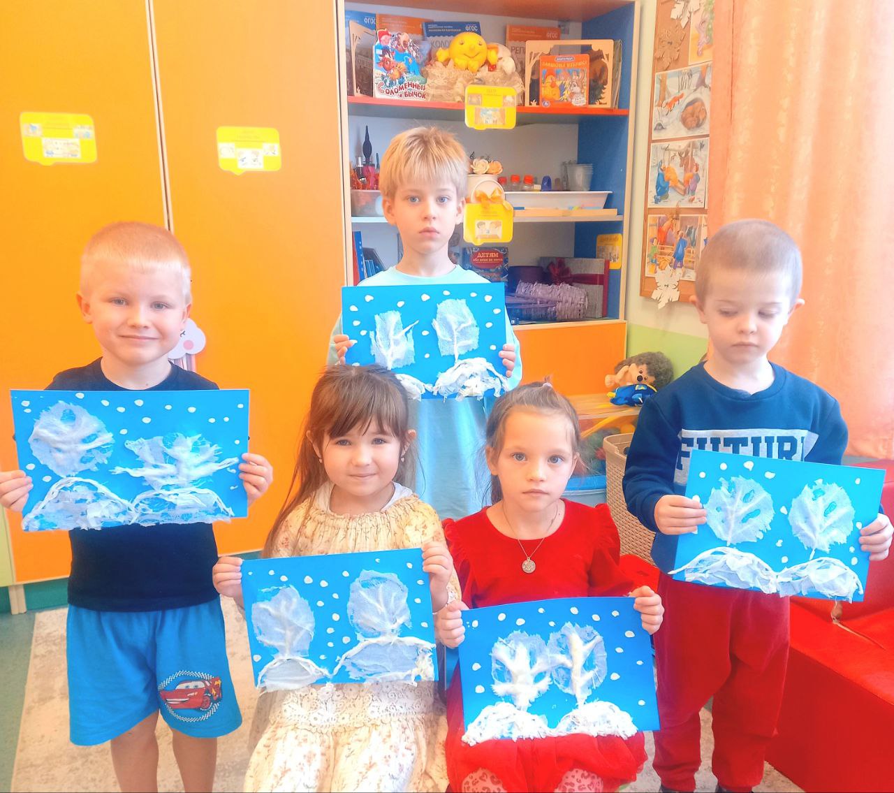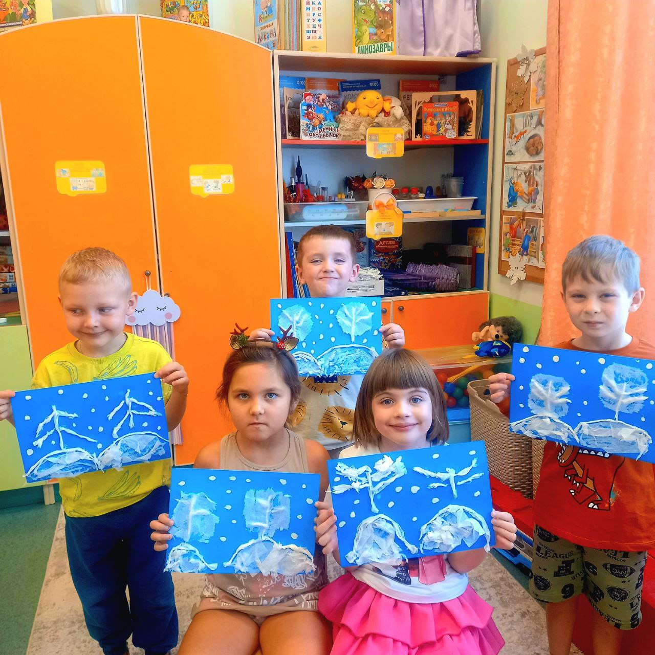 На протяжении этой недели дети также изображали зиму с помощью красок, клея, пластилина и салфеток.
