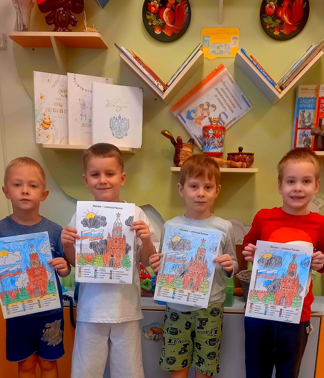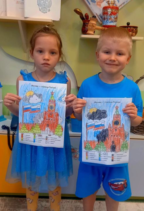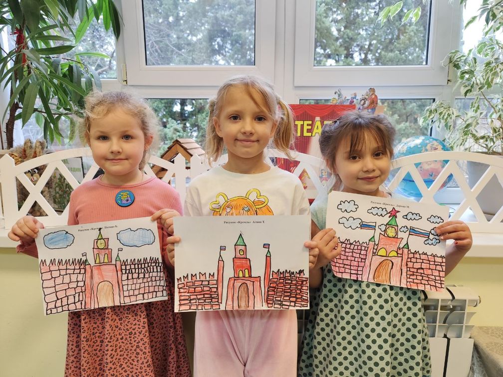 На занятиях по художественно-эстетическому развитию ребята выполнили пластилинографию «Моя Россия» и нарисовали главную башню Кремля - Спасскую башню.
