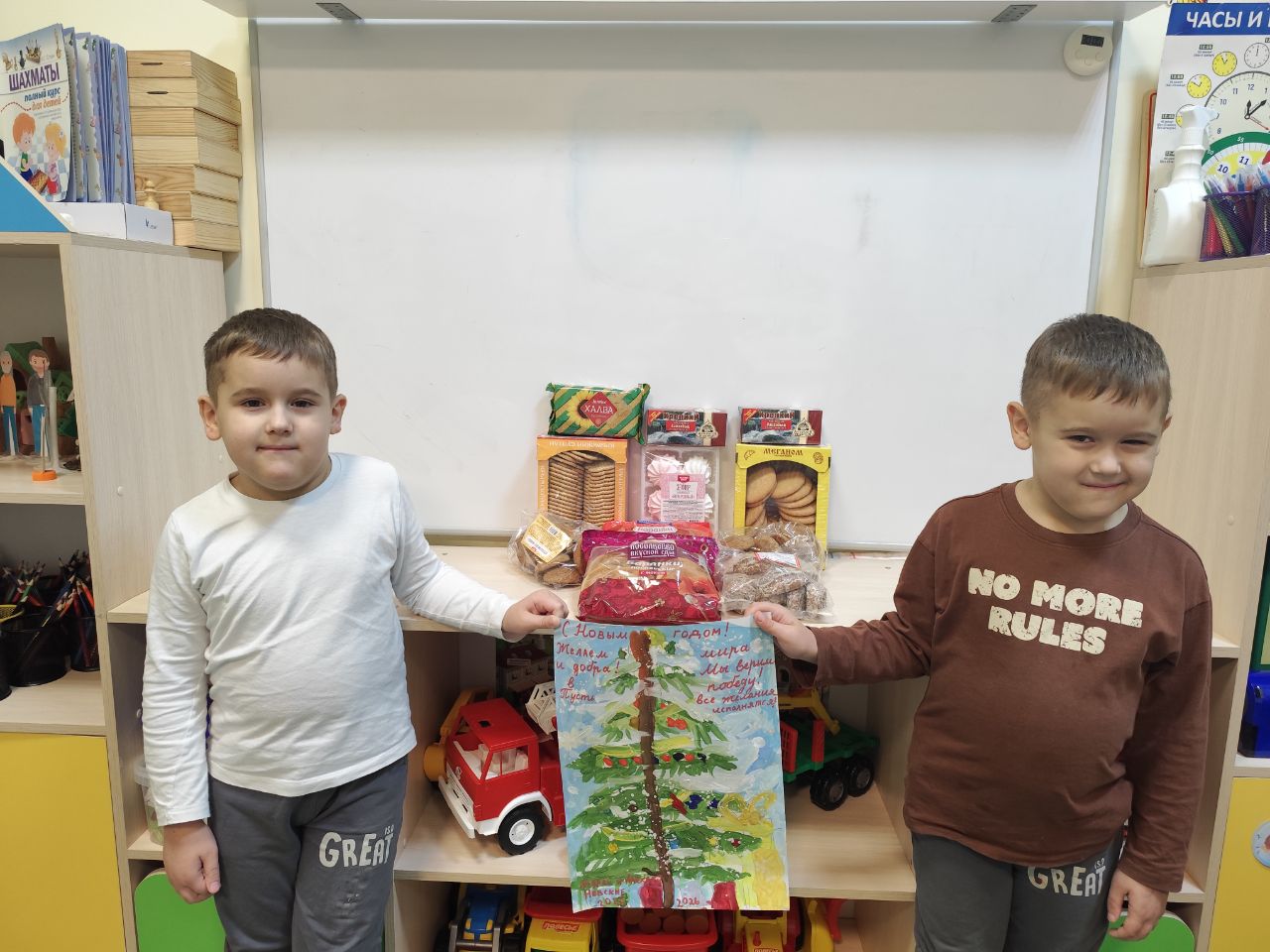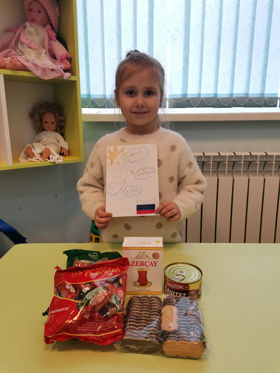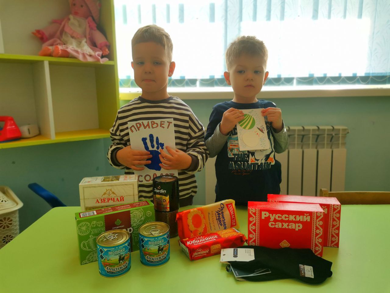Воспитанники детского сада совместно с педагогами и родителями рисовали открытки, писали письма, а также принесли угощения, сладости и средства гигиены.
