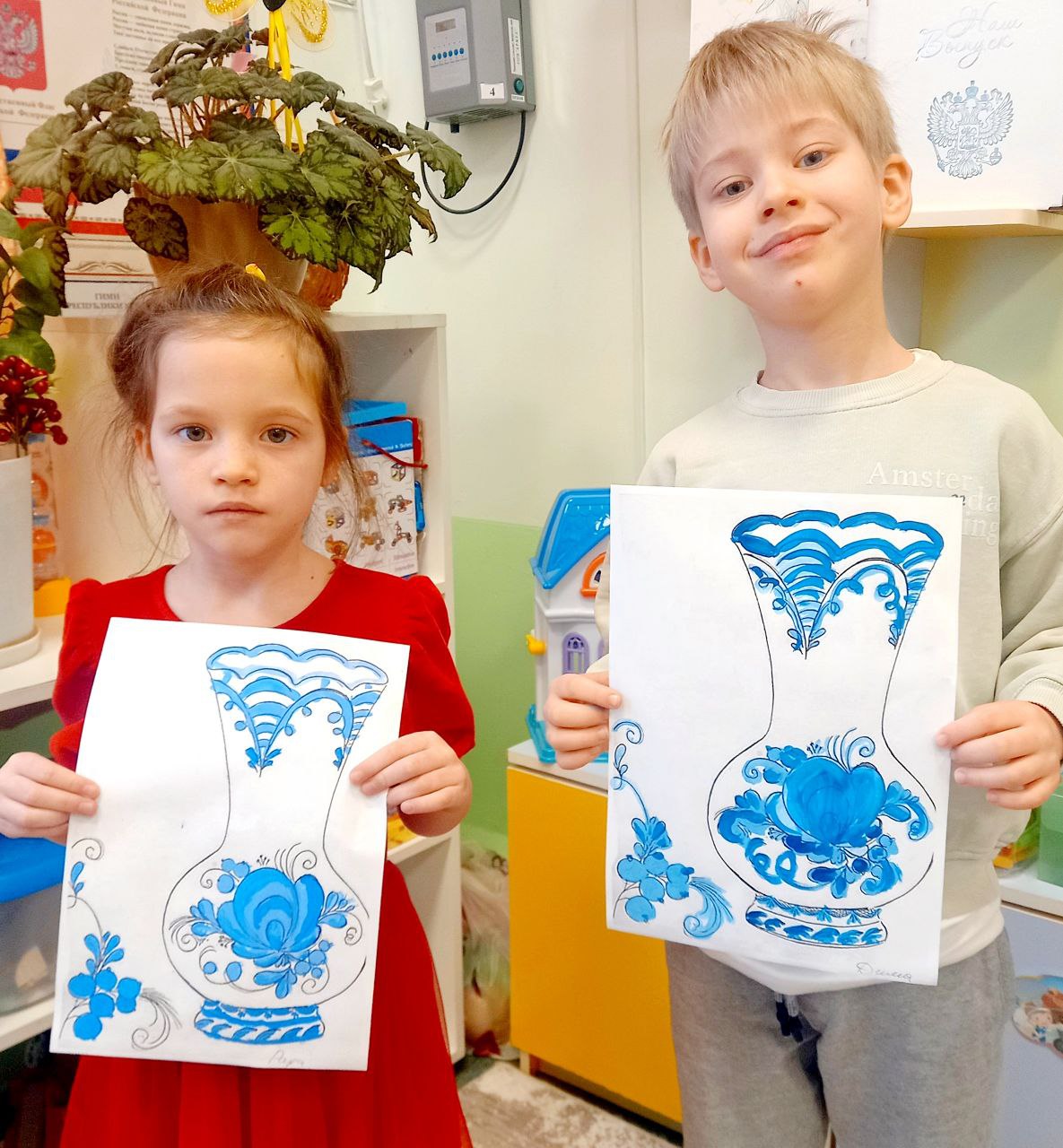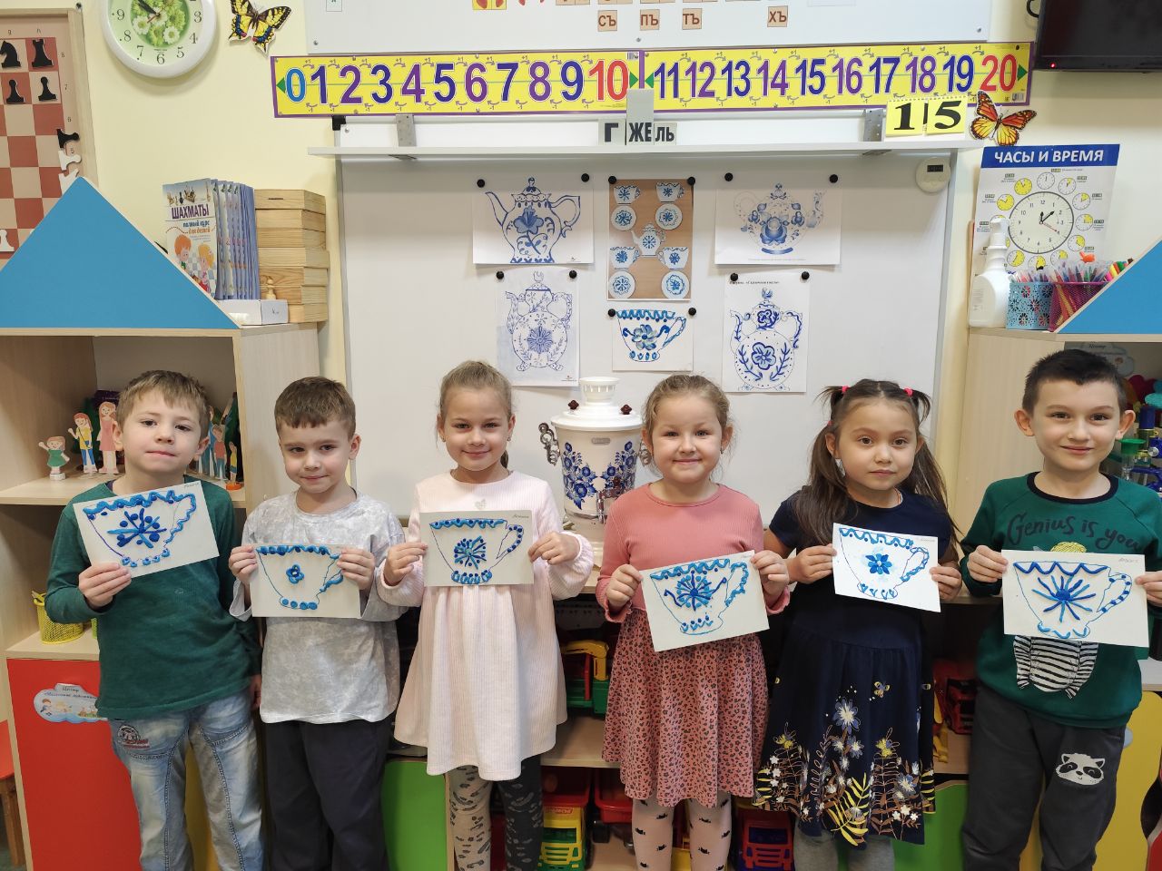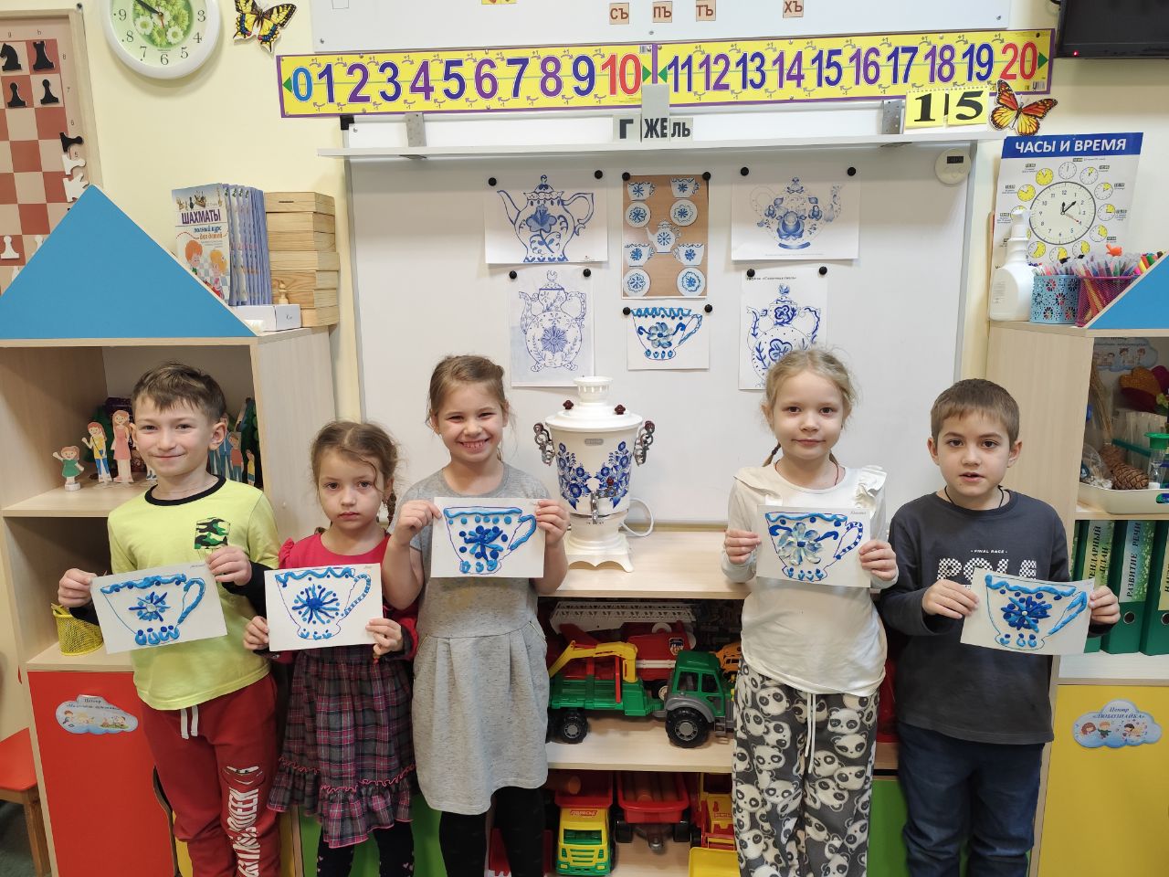 Ребята узнали много нового и вспомнили уже известные факты об искусстве Гжель, которое было развито в русской деревне Гжель, расположенной недалеко от Москвы.