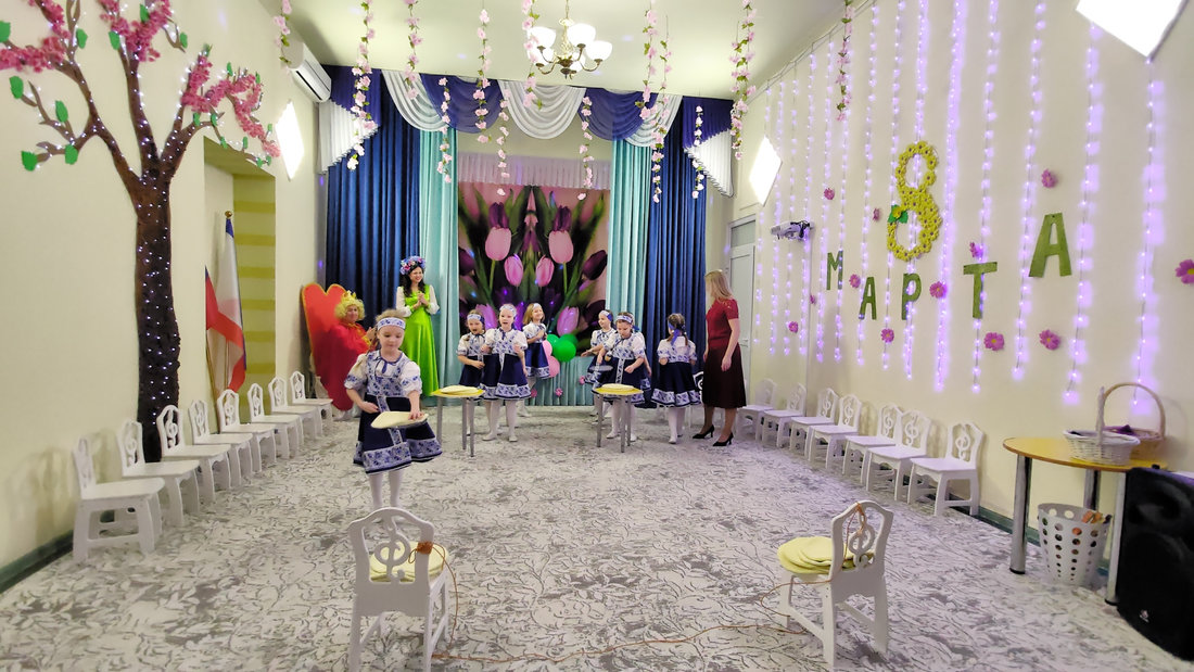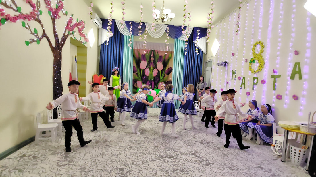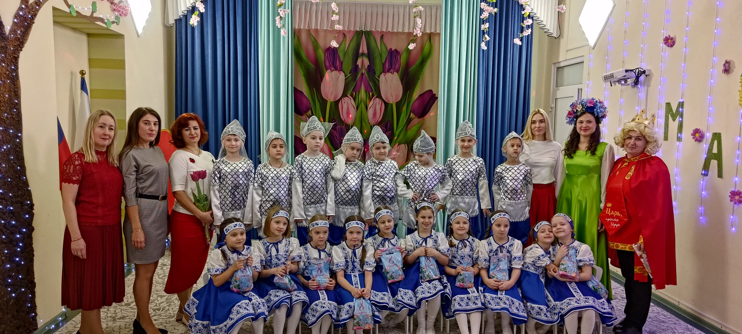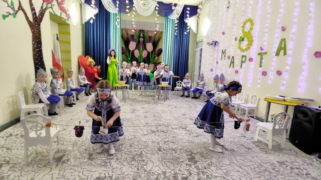В эту пятницу воспитанники подготовительной группы «Светлячки» порадовали своих мам и бабушек настоящей весенней сказкой. Царь Горох побывал на мероприятии в поисках невесты для своего сына, но так и не смог отдать предпочтение одной из них. Смелые и отважные мальчики в образе русских богатырей танцевали для девочек, читали стихи и помогали в хозяйственных делах.