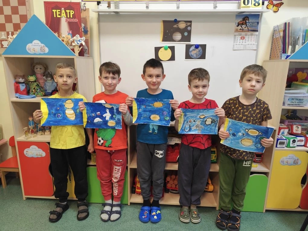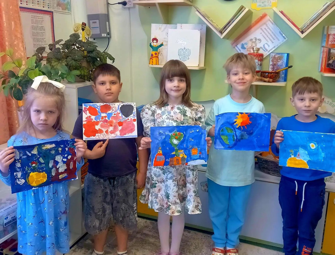 Дети с удовольствием рисовали картинки о космосе, конструировали ракеты и делали аппликации.