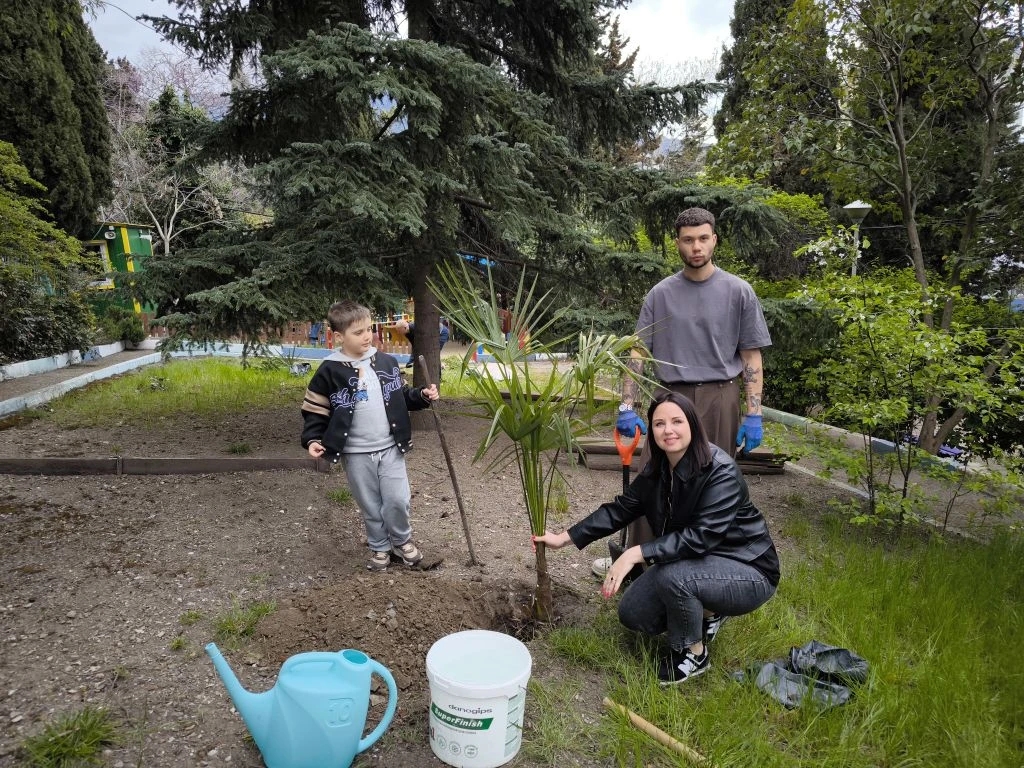 А семья Вахрушевых подарила детскому саду пальмы и организовала их посадку на территории «Экологической тропы».