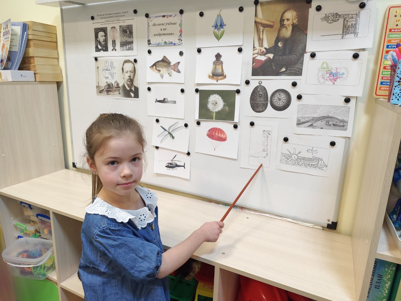 Наши воспитанники познакомились с такими изобретателями как: Александр Попов (радио), Павел Яблочков (лампочка), Иван Кулибин (водоход, механическая нога, подъёмник, планетные часы, фонарь-прожектор, повозка-самокатка).