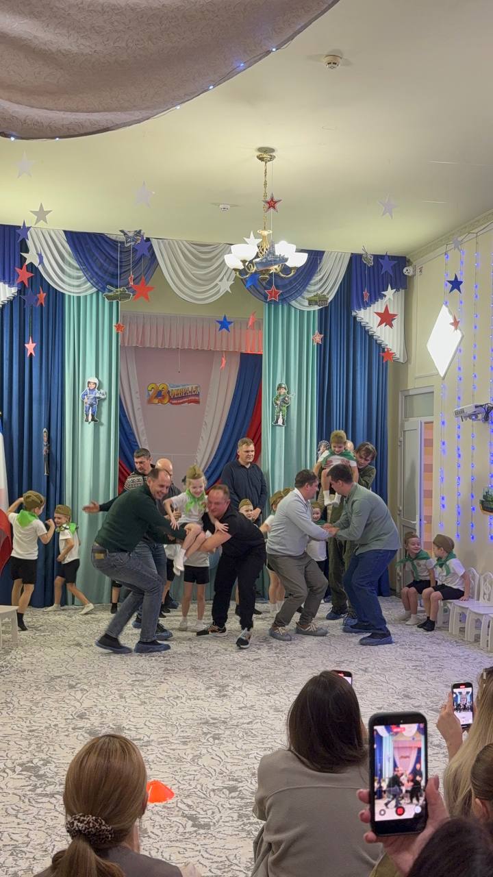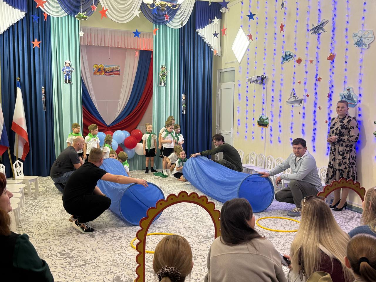 Дети радовали своих дорогих отцов и дедов чтением стихов, пением песен и танцами. Папы и их дети играли в игры на военную тематику.