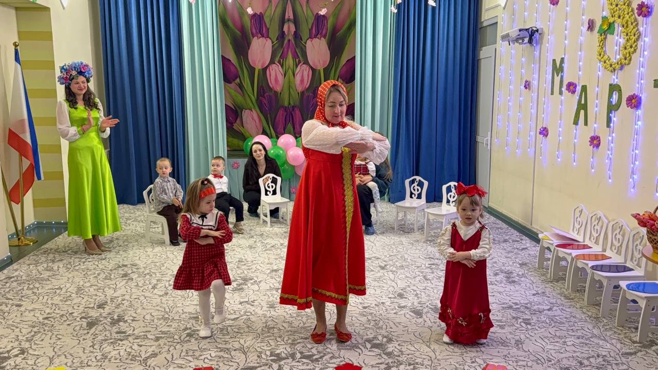 В гостях у юных дошколят побывали Весна и Матрёшка. Дети читали стихи, пели песни и играли с гостями праздника.