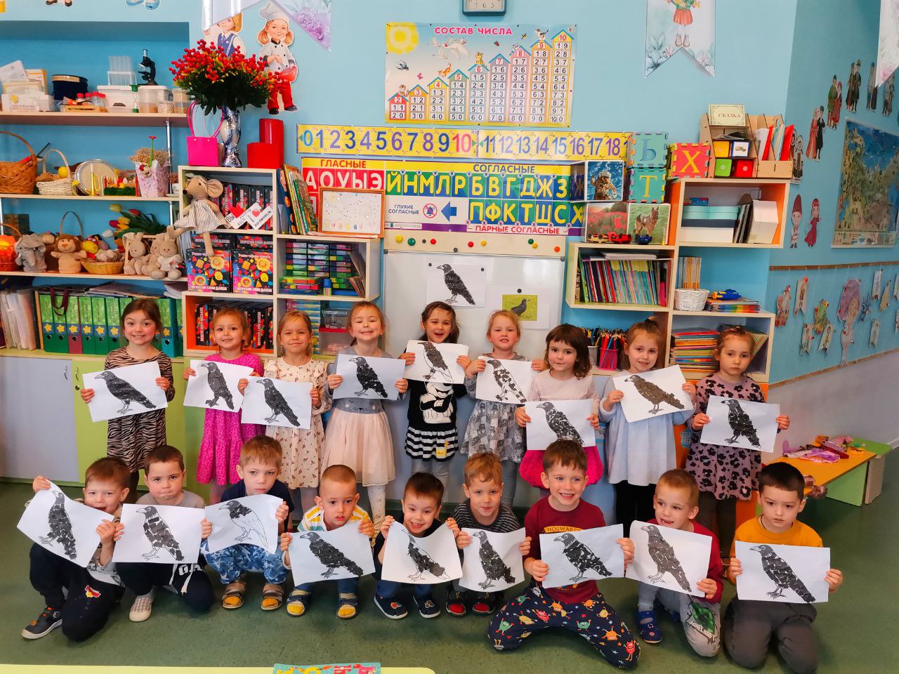 Воспитатели нашего детского сада провели с ребятами беседу о перелетных птицах, о грачах, узнали, что грач близкий родственник вороне, он такой же умный и жизнеспособный.